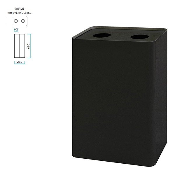 ミヅシマ Mseries 屑入 ノーマル(表示無し) 丸穴2 ブラック(艶消し) 間口420×奥行280×高さ650mm 362-0229