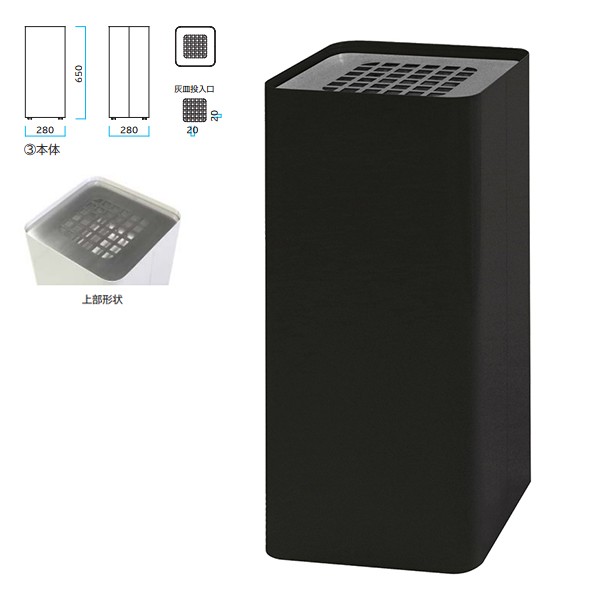 ミヅシマ Mseries 屑入S ブラック(艶消し)投入口 角穴 #B不燃ゴミ 362-0122 間口280×奥行280×高さ650mm