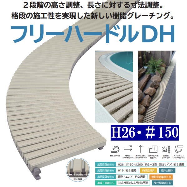 ミヅシマ グレーチング 塩化ビニール製 フリーハードルDH 431-0400 H26・#150 幅150mm×長さ1m×溝蓋仕様高さ26mm