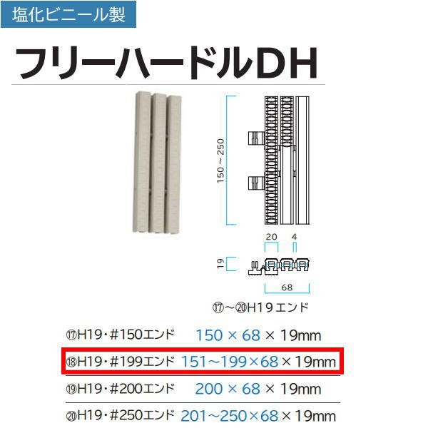 ミヅシマ グレーチング 塩化ビニール製 フリーハードルDH 431-0412 H19・#199エンド 151〜199×68×19mm