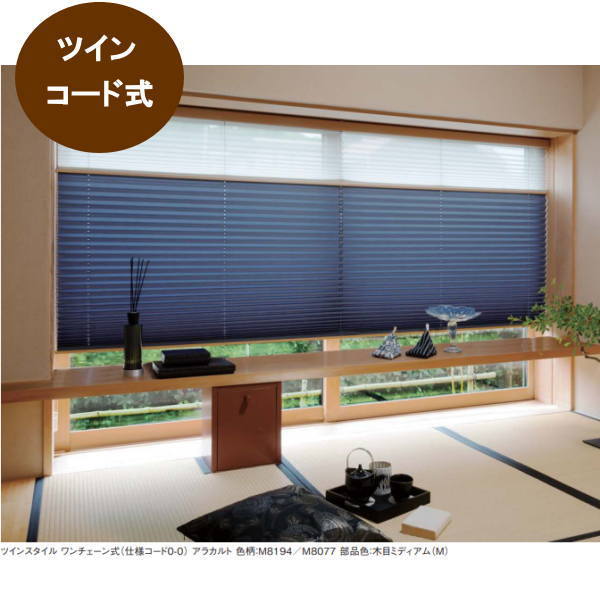 ニチベイ もなみ プリーツスクリーン ヒナタ 和布調 ツインスタイル コード式 幅805〜1200mm 高さ2210〜2500mm