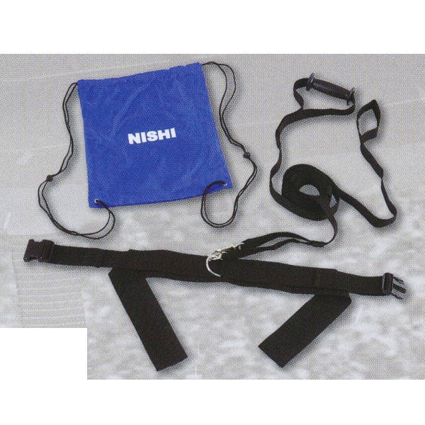 ■腰にベルトを巻き、パートナーが後方からハンドルを持って負荷をかけます。パートナーはかけ声と共に選手につながれたハーネス(リリースフック)を解き放ちます。