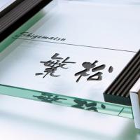 ガラス、タイル、ステンレスそれぞれの素材の魅力が一つの表札に奥深い表情と重厚な高級感を与えます。