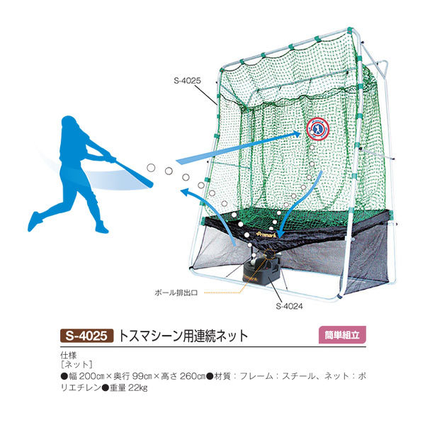 三和体育 トスマシーン用連続ネット S-4025 幅200cm×奥行99cm×高さ260cm 簡単組立
