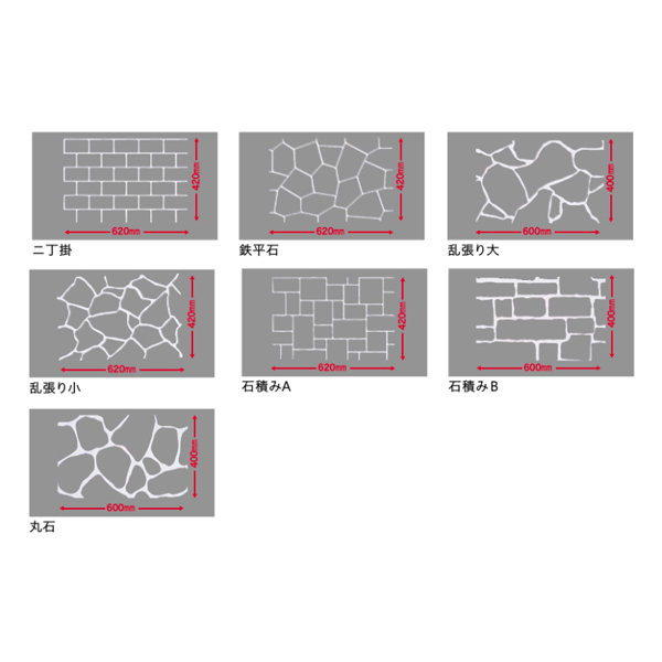 乱張り、石積み、レンガ調など7パターンのデザインが簡単に作れます。