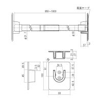 セット内容:ブラケット2個、伸縮ランドリーパイプ1本、パッキン2枚、取付ネジ4x30トラスタッピングネジ4本。