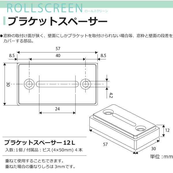 立川機工 FIRSTAGE ロールスクリーン用 オプション ブラケットスペーサー12L 1個