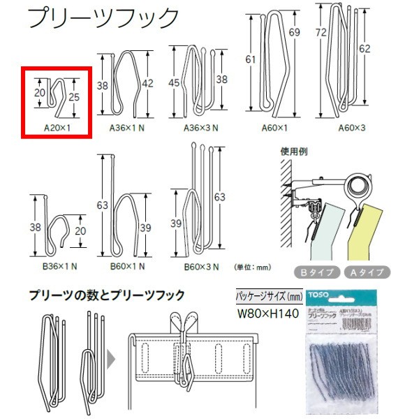 トーソー プリーツフック A60×1 75mmテープAタイプ用 スチール 500個 448749