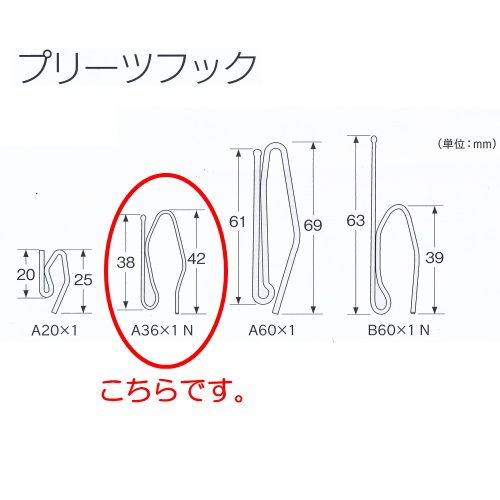 トーソー プリーツフック A36×1N 50mmテープAタイプ用 スチール 500個 673615