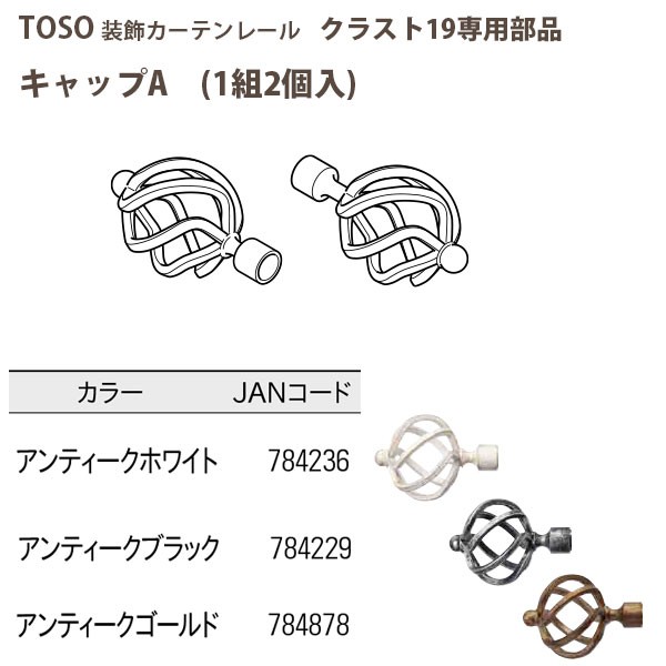 トーソー 装飾カーテンレール クラスト19部品 キャップA 1組2個入 アンティークホワイト/ アンティークブラック/ アンティークゴールド どれか