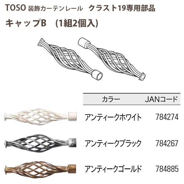 トーソー 装飾カーテンレール クラスト19部品 キャップB 1組2個入 アンティークホワイト/ アンティークブラック/ アンティークゴールド どれか