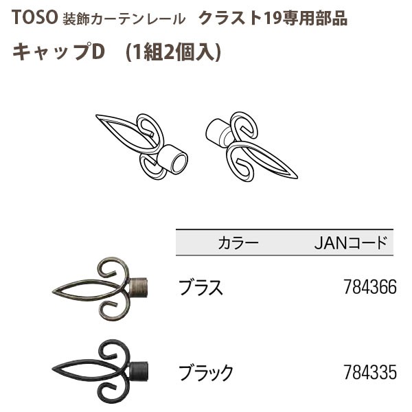 トーソー 装飾カーテンレール クラスト19部品 キャップD 1組2個入 ブラス/ ブラック どちらか