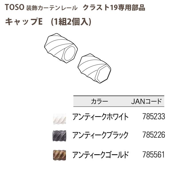 トーソー 装飾カーテンレール クラスト19部品 キャップE 1組2個入 アンティークホワイト/ アンティークブラック/ アンティークゴールド どれか