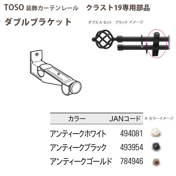 トーソー 装飾カーテンレール クラスト19部品 ダブルブラケット アンティークホワイト/ アンティークブラック/ アンティークゴールド どれか1つ