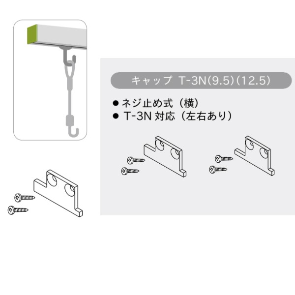 トーソー ピクチャーレール Tシリーズ 部品 キャップ T-3N(9.5)左 ネジ止め式:横