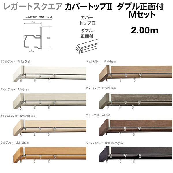 トーソー 装飾カーテンレール レガートスクエア カバートップ2 ダブル 正面付 Mセット 規格サイズ 2.00m