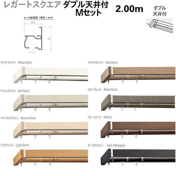 トーソー 装飾カーテンレール レガートスクエア ダブル 天井付 Mセット 規格サイズ 2.00m
