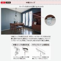 中間ストップを取付ければ、1本のレールでカーテンを好みの位置に固定できます。連窓もレール1本できれいな納まり。スタイリングカーテンも手軽にできます。後入れなので施工も簡単。