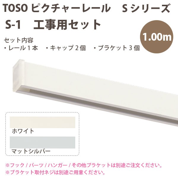 トーソー ピクチャーレール S-1 工事用セット 1.00m ホワイト マッドシルバー どちらか1セット