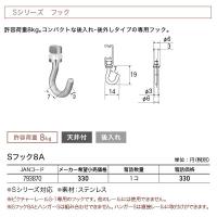 ※Sフック8AとハンガーSは組み合わせできません。ハンガーSは直接レールに取付けができます。