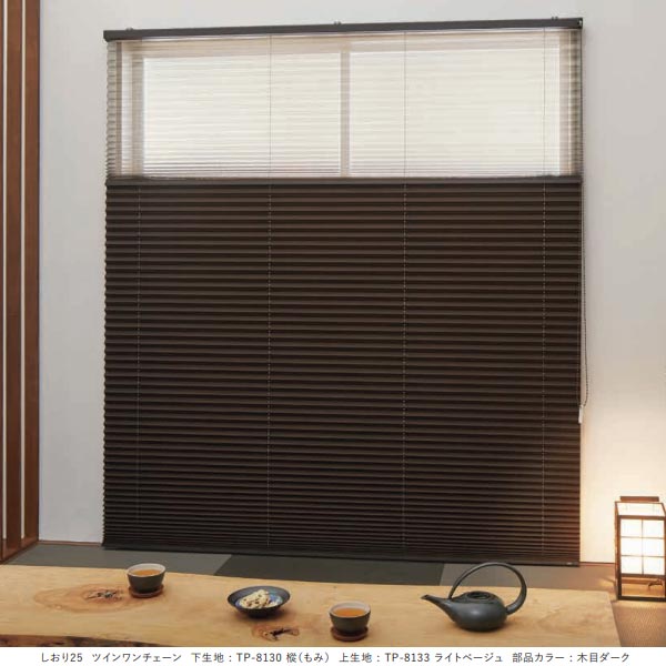 トーソー プリーツスクリーン 遮光 木肌 しおり25 シングルスタイル チェーンタイプ TP-8128〜TP-8130 幅2405〜2800mm 高さ300〜600mm