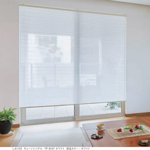 トーソー プリーツスクリーン シアー スズカ しおり25 シングルスタイル チェーンタイプ TP-8147 ホワイト 幅1205〜1600mm 高さ1810〜2200mm