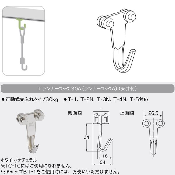 トーソー ピクチャーレール Tシリーズ 部品 Tランナーフック 30A ランナーフックA 1コ入 ホワイト 502823