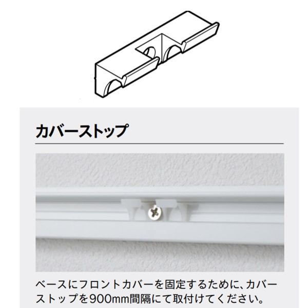 ベースにフロントカバーを固定するために、カバーストップを900mm間隔にて取付けてください。