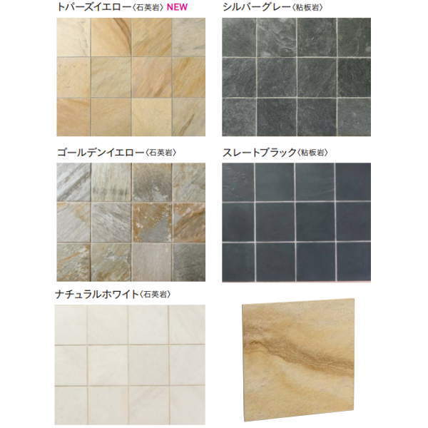 ●天然石は乾いた状態と湿潤状態では違った味わいの色となります。特に「スレートブラック」「ナチュラルグリーン」は色合いが変わりますのでご了承下さい。