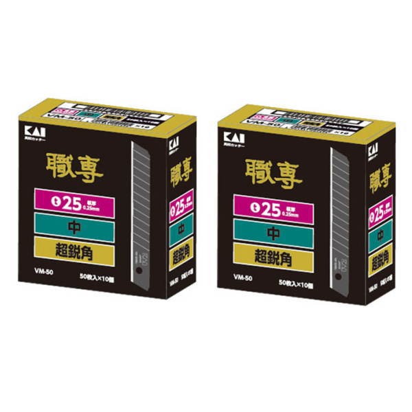 貝印 職専 カッター 替刃 VM-50 中 鋭角 黒刃 500枚(50枚×10)を2つ 合計1000枚