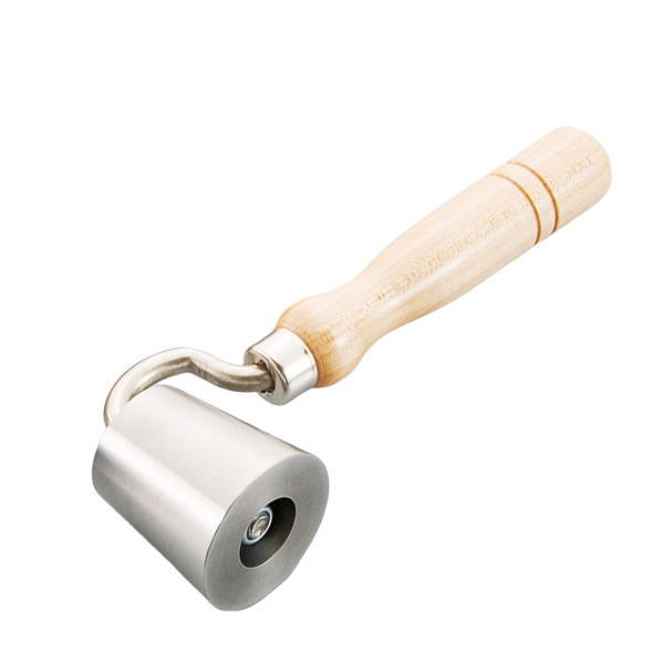 壁際の床材圧着、階段の立ち上がり部の圧着に最適なテーパー型のローラーです。