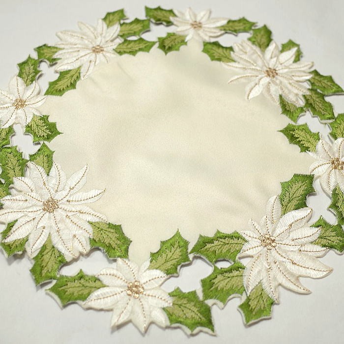 ドイリー 花瓶敷き 約30cm 円形 クリスマス ポインセチア