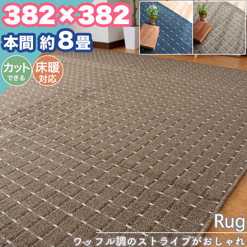 春クーポン実施中 ラグ カーペット 本間 8畳 382×382 ストライプ シンプル 無地 フリーカット 8帖 ラグマット おしゃれ 平織り 絨毯