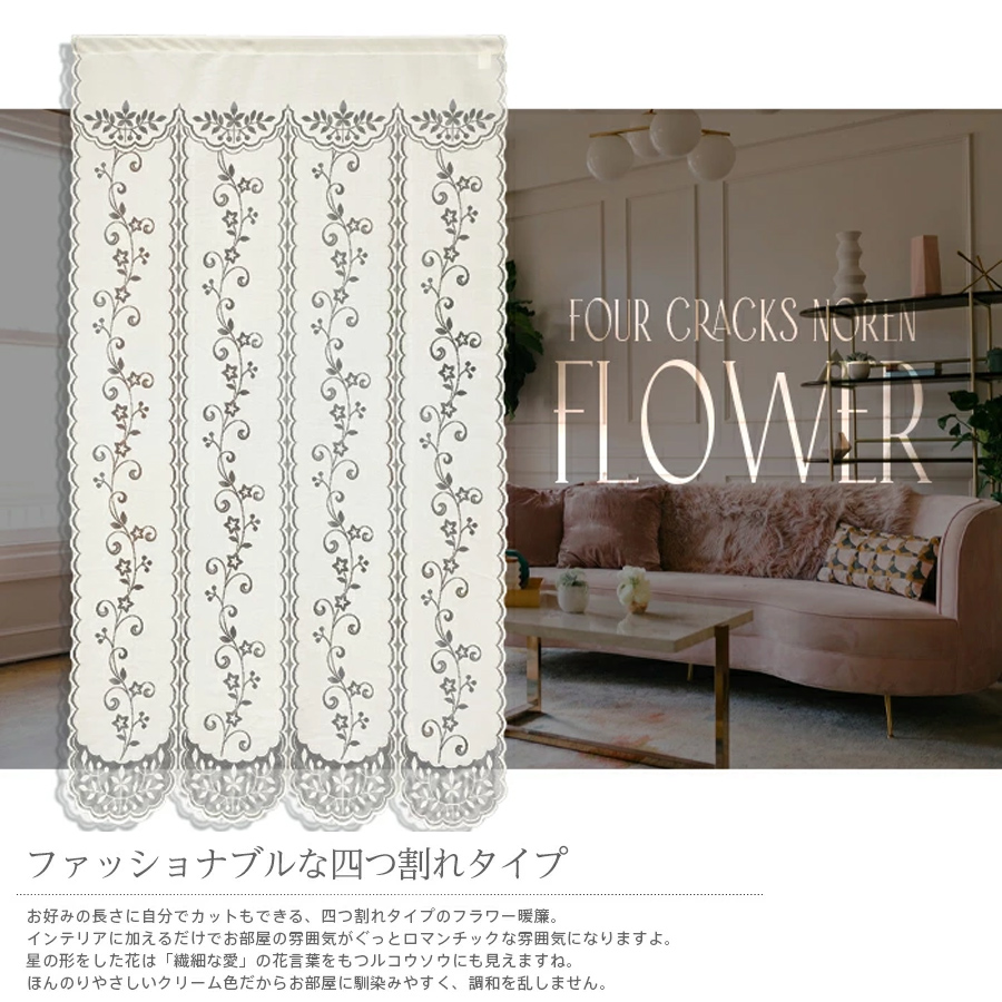 本日限定セール のれん 暖簾 花 北欧 間仕切り 85×150 四つ割れ フラワー 北欧テイスト ノルディック ボタニカル カーテン おしゃれ 目隠し