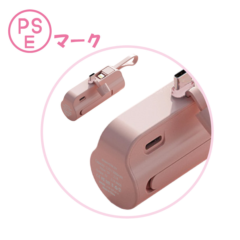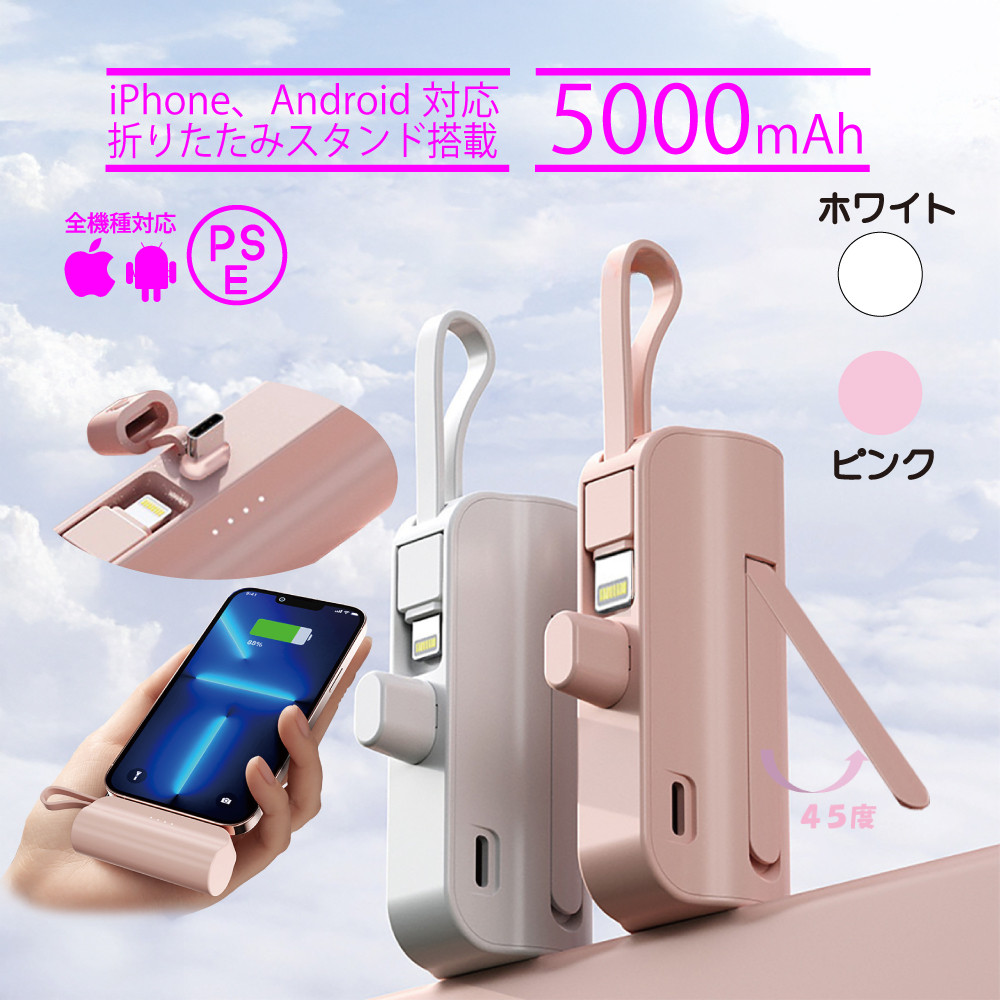 モバイルバッテリー 大容量 5000mAh 挿すだけ充電 大人気 かわいい 小型 軽量 内蔵ケーブル iPhone17 type-c 災害 防災グッズ 地震対策 送料無料