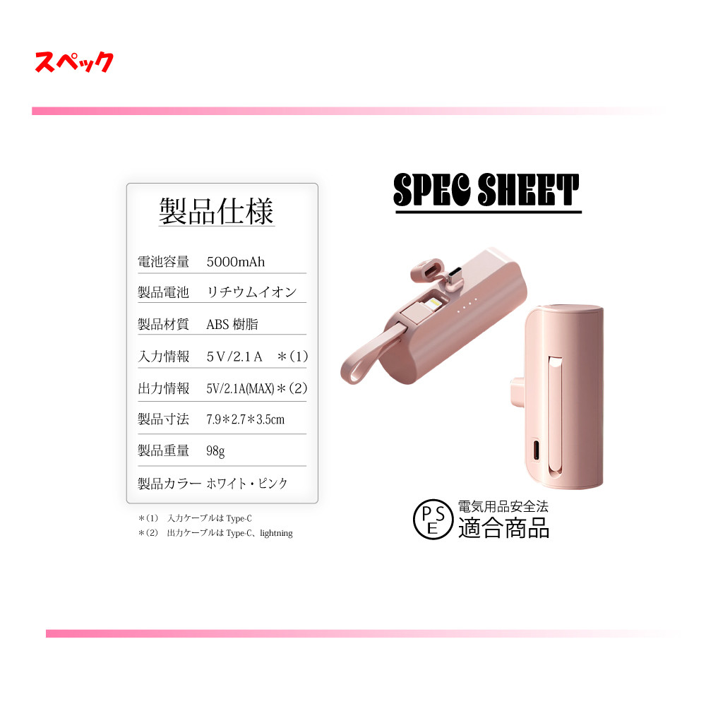出力情報:Type-C : 2.1A(MAX) lightning : 2.1A(MAX)
