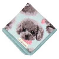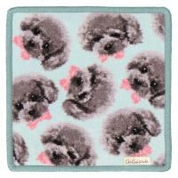 リボンでおめかししたトイプードルがちりばめられたシェニール織ハンカチ。