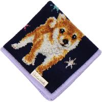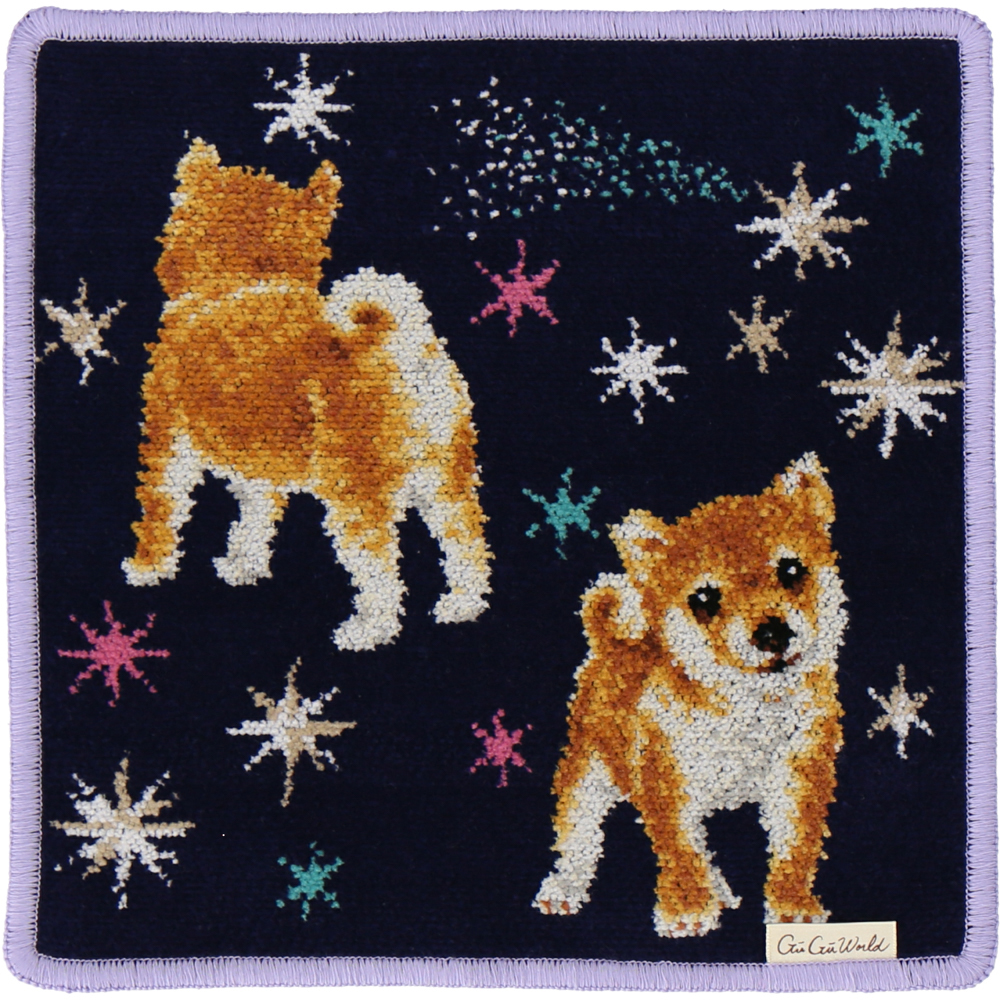 夜空を眺める柴犬が愛くるしいデザインが魅力のシェニールハンカチ。