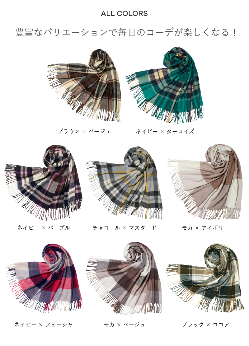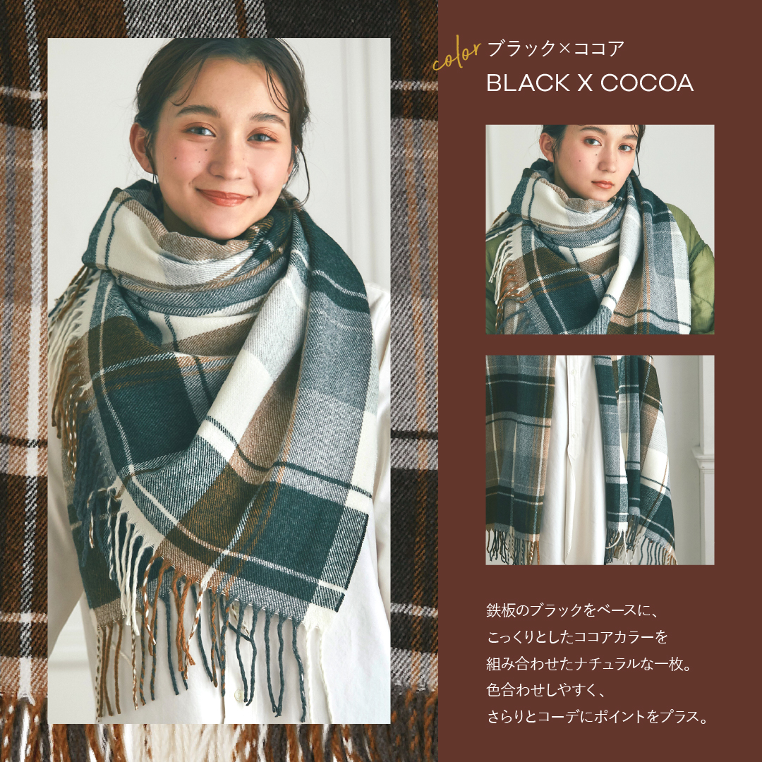 カシミヤのようなしっとりした肌触りの大判ストールです。