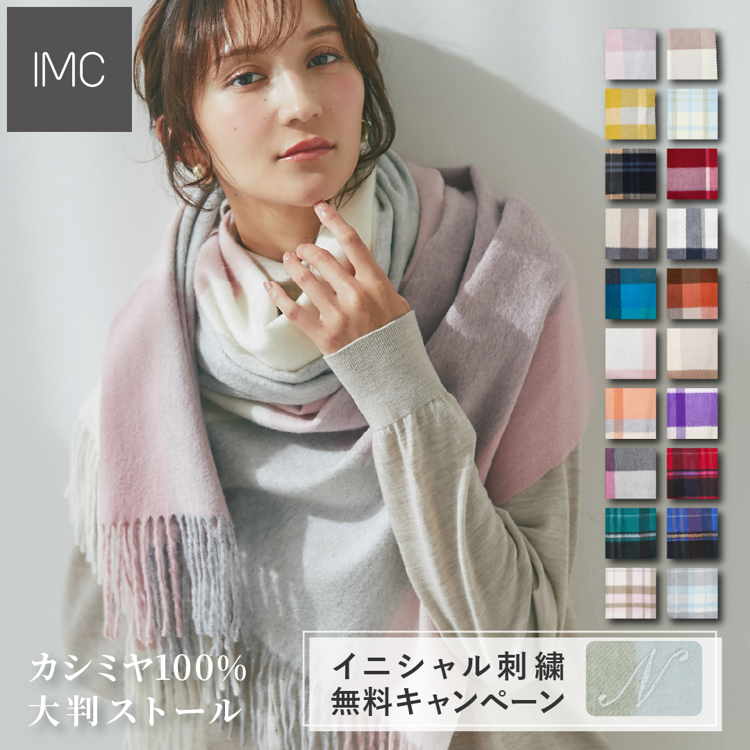 【イニシャル刺繍無料】IMC カシミヤ 100% ストール チェック 柄 大判ストール マフラー カシミア クリスマス ギフト プレゼント 誕生日 レディース