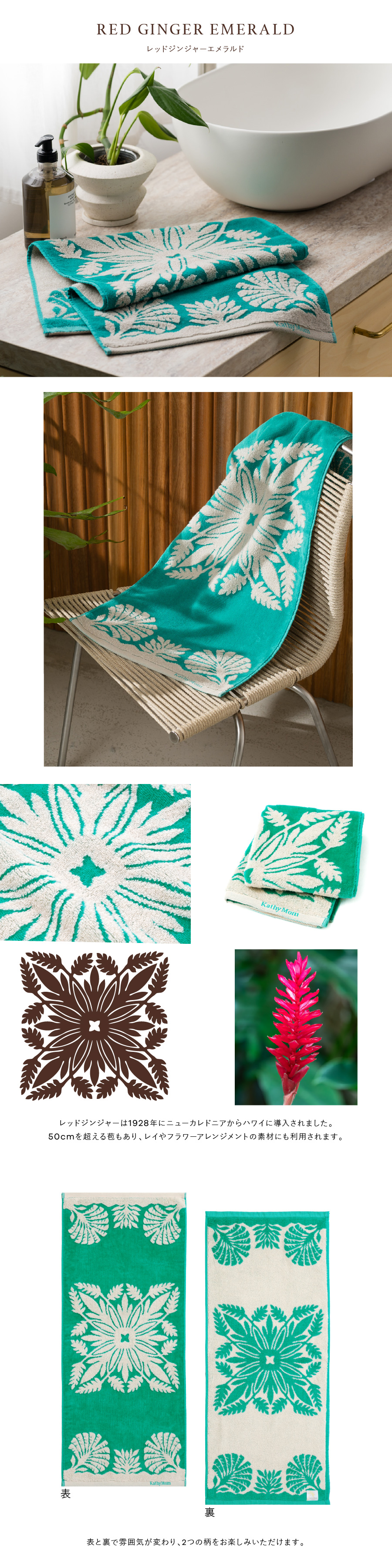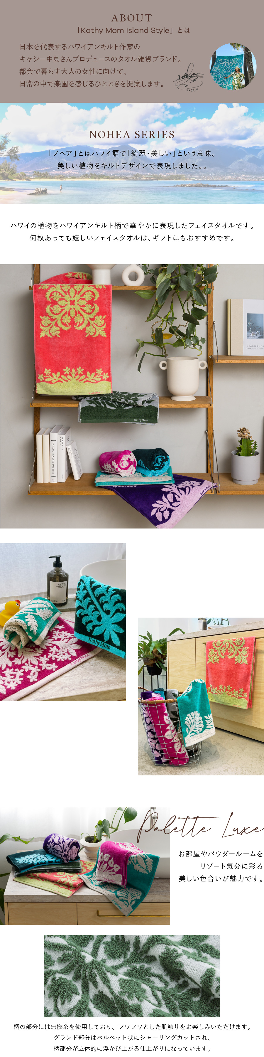 キャシーマム ハワイアンキルト柄 ノヘアシリーズ タオル フェイスタオル キャシー中島 ハワイ レディース メンズ おしゃれ かわいい プレゼント ギフト
