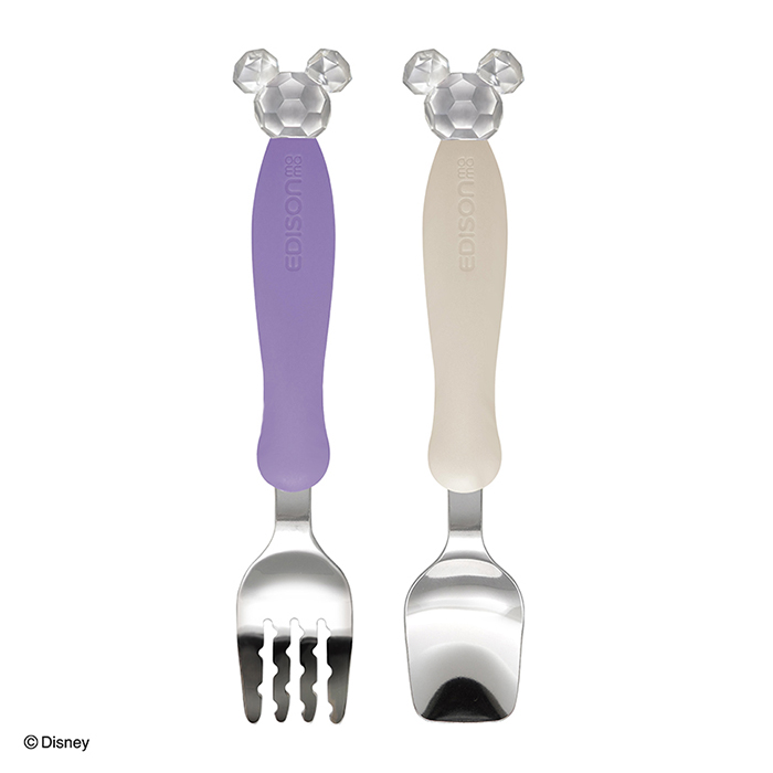 エジソンママ EDISON フォークスプーンセット Disney ミッキークリスタル カバー付き カトラリー ベビー食器 100周年記念デザイン