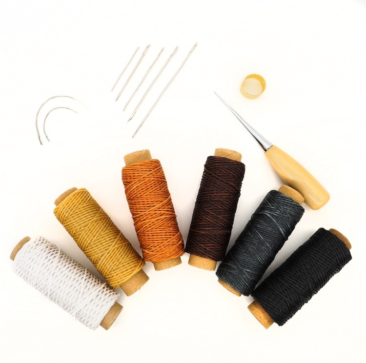 7*革製の縫い針、1*ストレートヘッド千枚通し、6*革製のワックス糸コード、1*シンブル