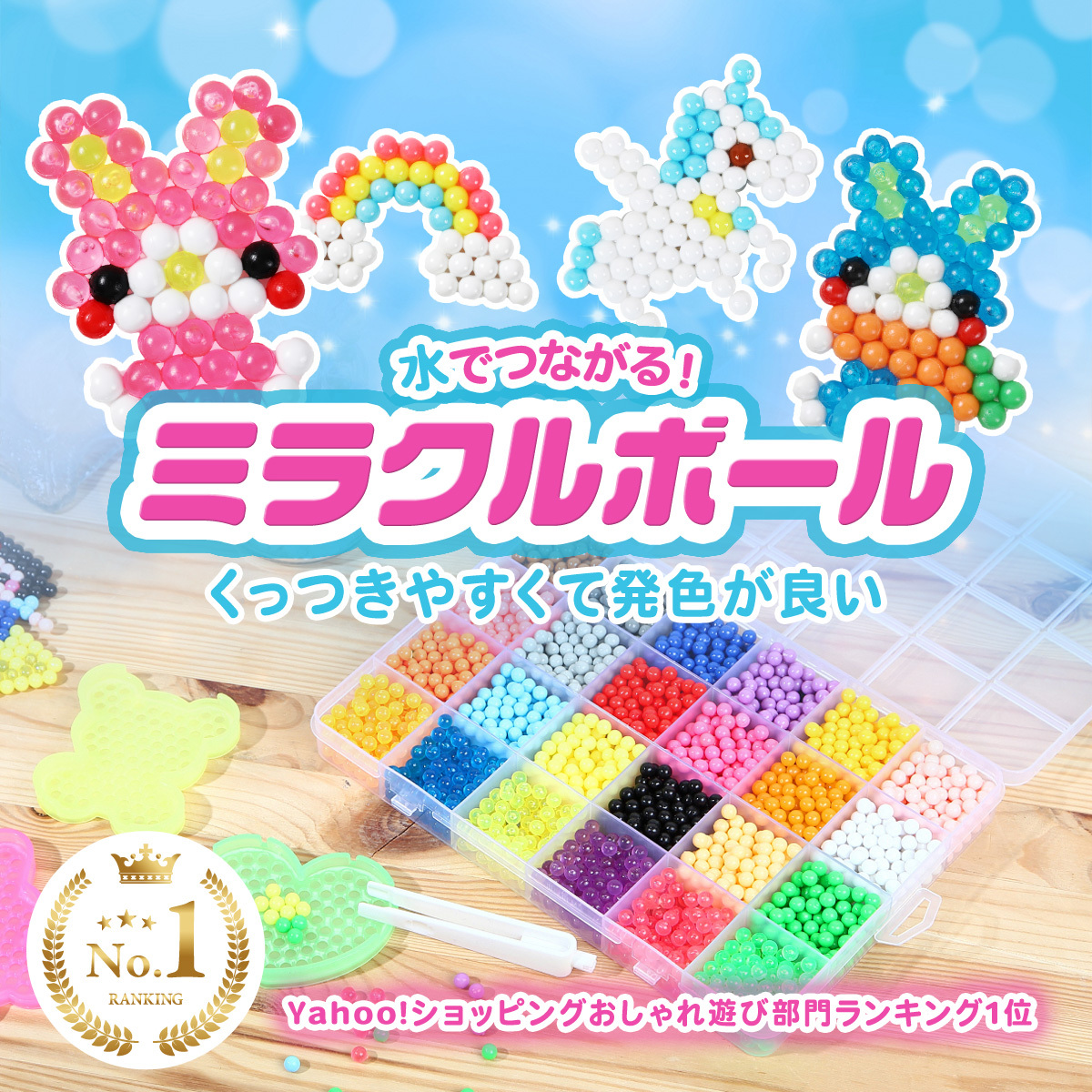 ・水でくっつくマジカルなビーズの丸型。