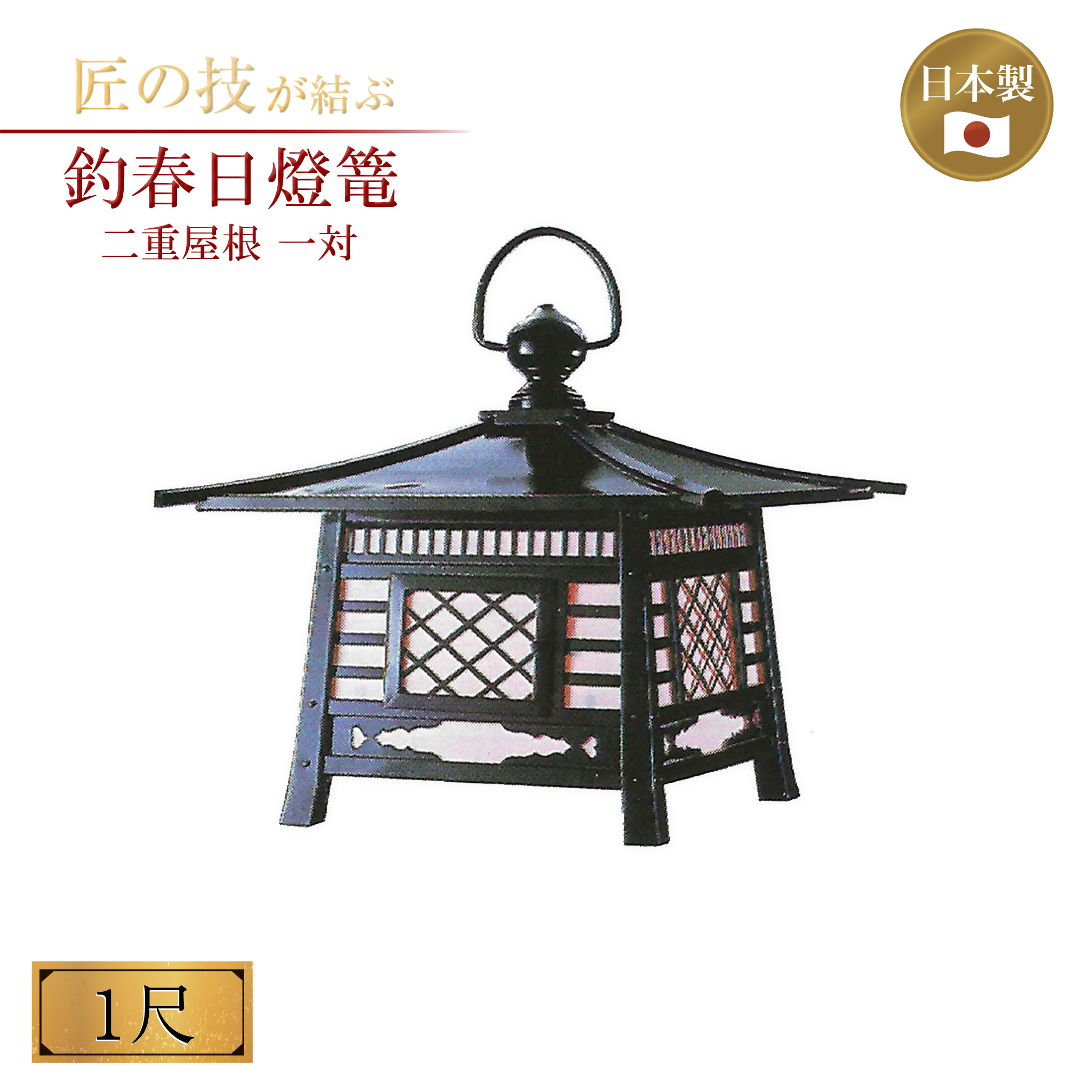 釣春日燈篭 二重屋根 電装付 一対 A型 1尺 灯篭 灯籠 燈籠 神具 神社 寺院 寺社仏閣 神棚
