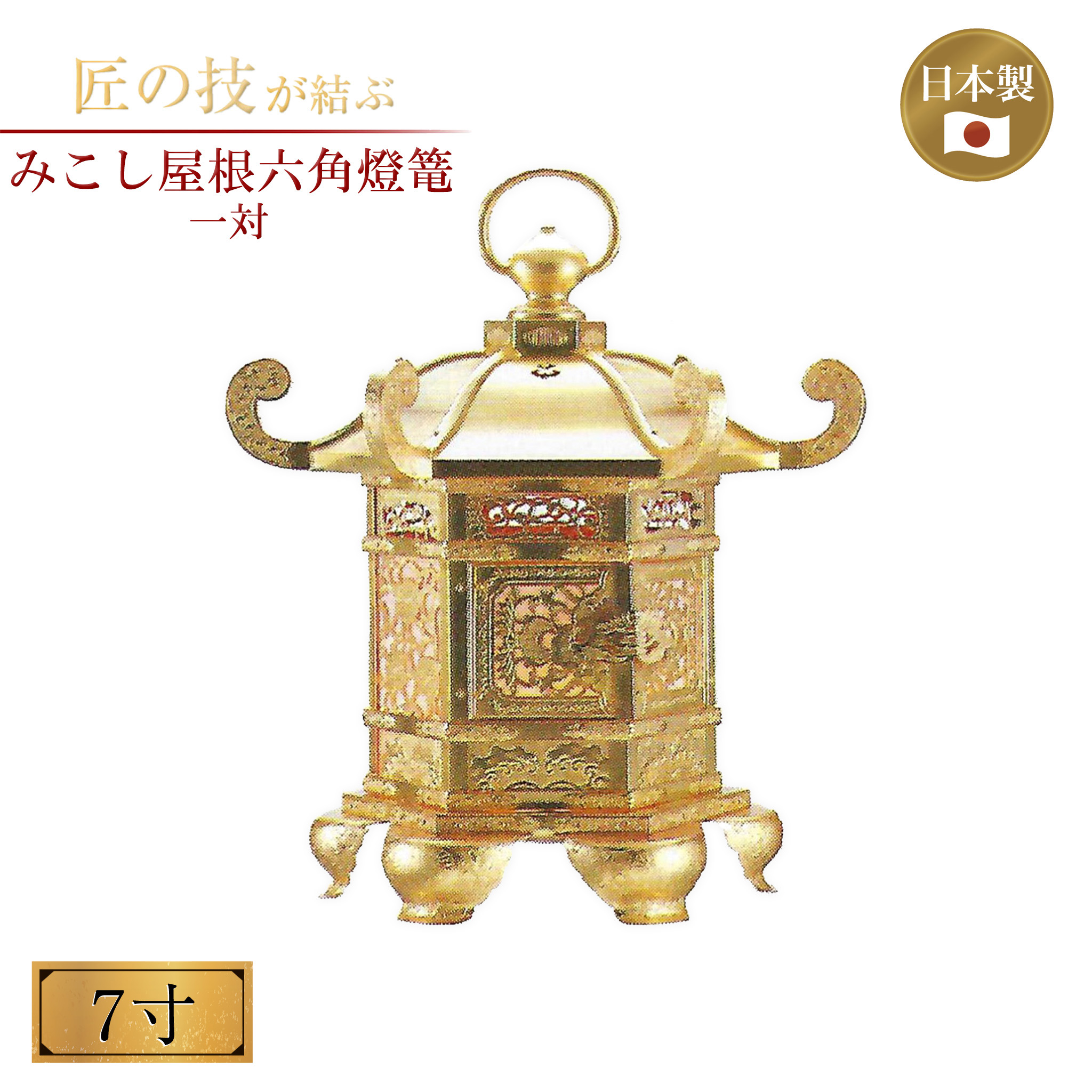 みこし屋根六角燈篭 一対 7寸 灯篭 灯籠 燈籠 神具 神社 寺院 寺社仏閣 神棚