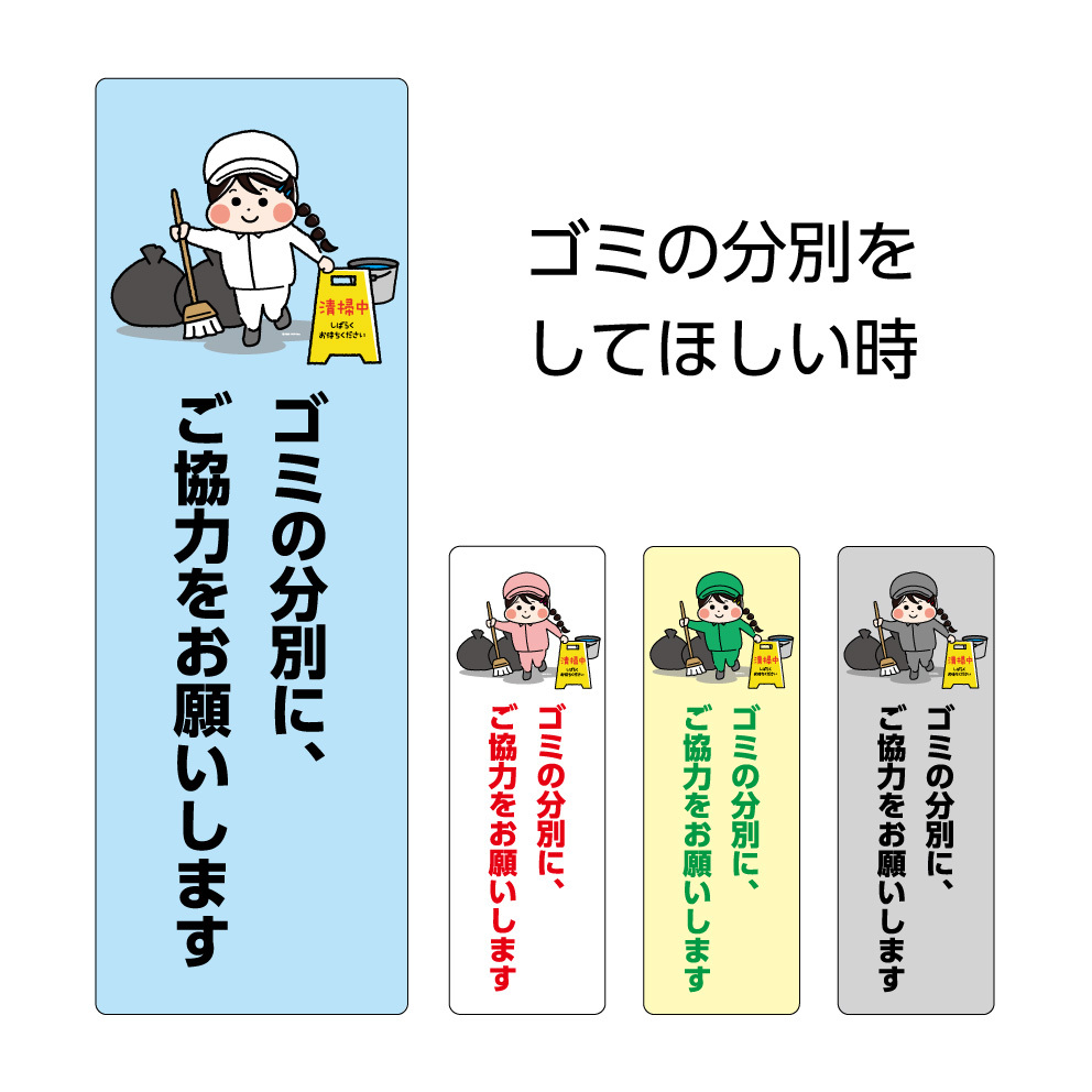 ゴミ 分別 マナー お願い ご協力 プレート 看板 ゴミ置場 ごみ置場 ルール パネル W100×H300mm 標識 分類 ゴミステーション イラスト 小 シンプル 業務用 縦