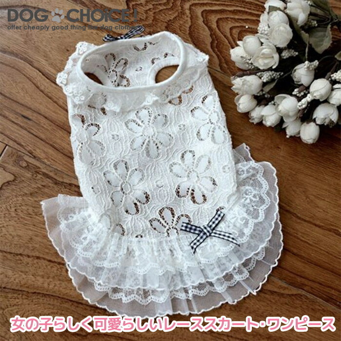 女の子らしく可愛らしいレーススカート・ワンピース レース/ワンピース/スカート/ドレス/タンクトップ/ノースリーブ/フリフリスカート/ワンピース/キャミソール 犬服/ペット服/ドッグウェア/春服/夏服/秋服/冬服/犬の服