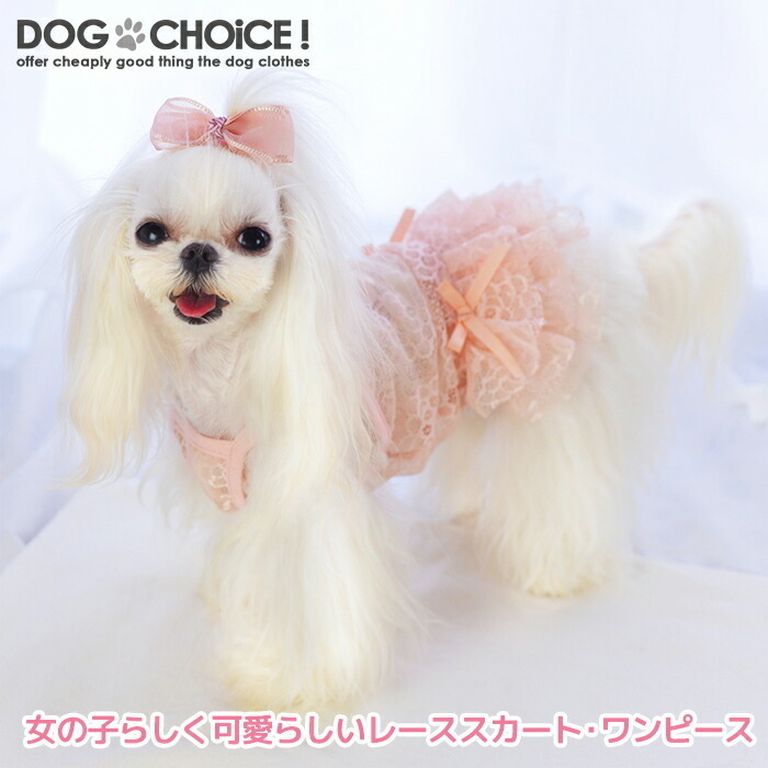 犬服 春 夏 春用 夏用 ピンク色が可愛い腰にリボンがついたレーススカート・ワンピース レース/ワンピース/スカート/ドレス/タンクトップ/ノースリーブ/フリフリスカート/ワンピース/キャミソール 犬服/ペット服/ドッグウェア/春服/夏服/秋服/冬服/犬の服