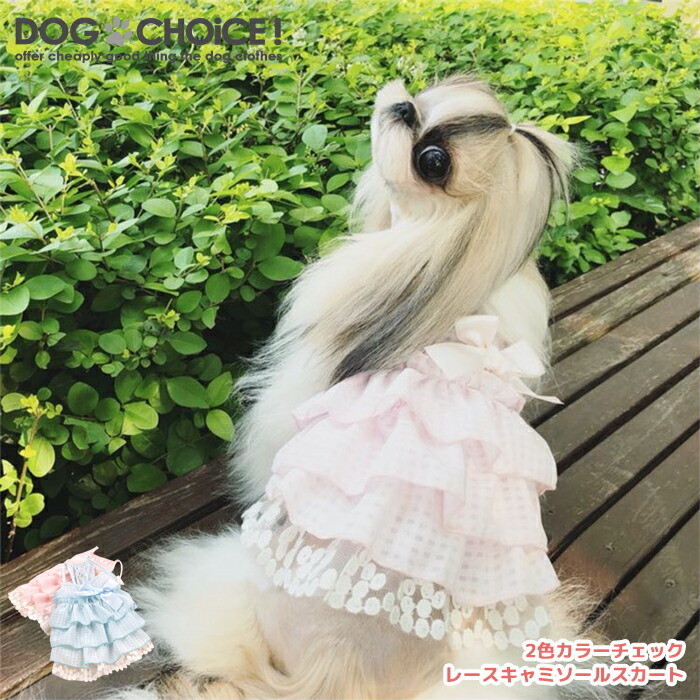 犬服 春 夏 春用 夏用 2カラーチェック風柄レースキャミソールスカート キャミソール/ドレス/スカート/ドレスコード/フリフリスカート/ワンピース 抜け毛防止 犬服/ペット服/ドッグウェア/春服/夏服/犬の服